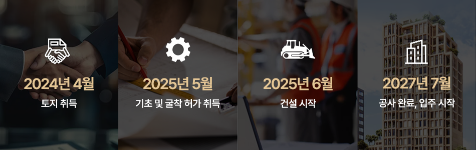 | 공사 일정 | 2024년 4월 토지 인수 완료 → 2025년 6월 착공 → 2027년 7월 공사 완료 및 분양 개시 예정 |